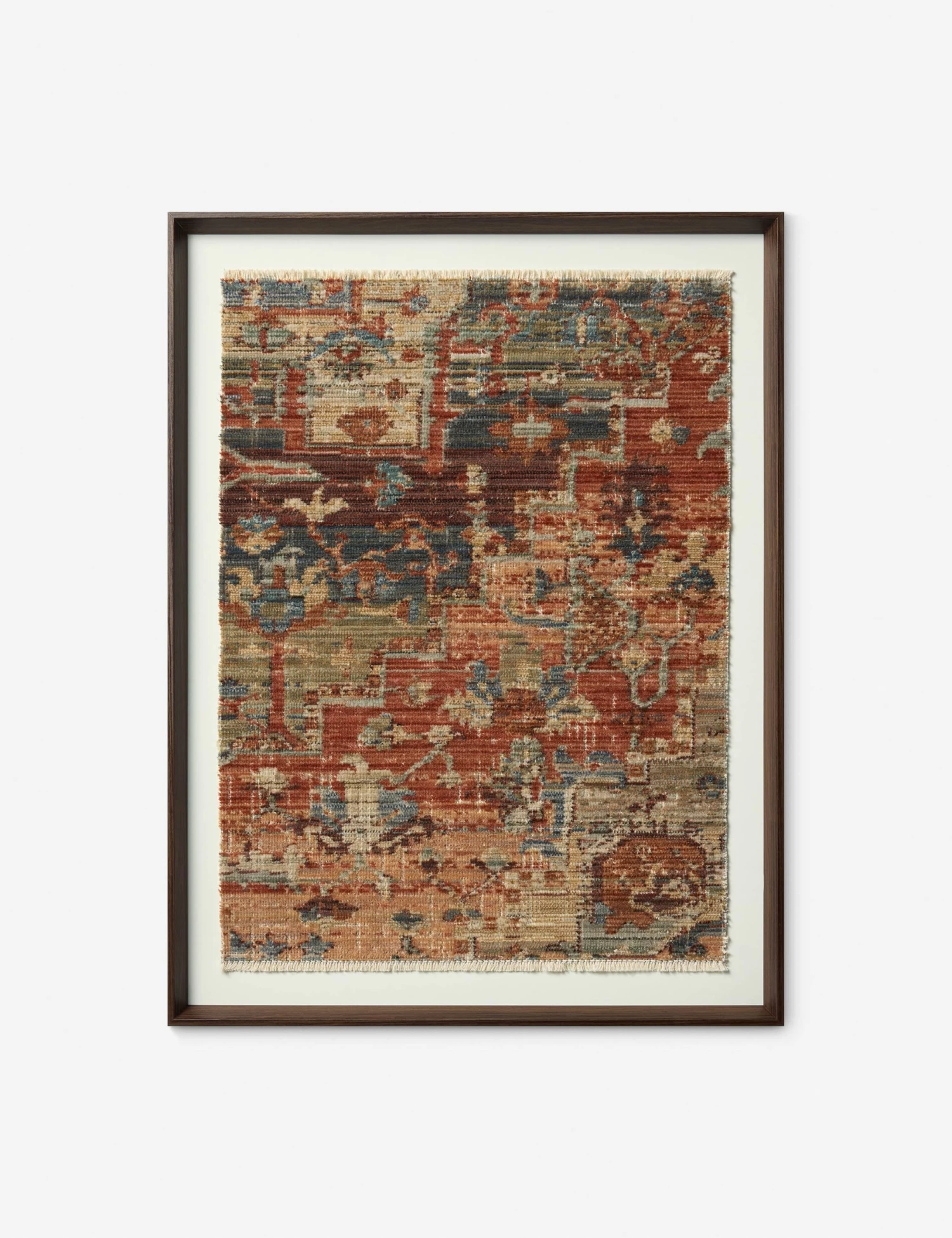 Bring a traveled air to your edit with this textile wall art. The intricate motifs and seasoned palette evoke a sense of vintage character—framed in wood for added warmth and texture. We love this unique wall art for a thoughtful curation that blends antique elements with modern design.